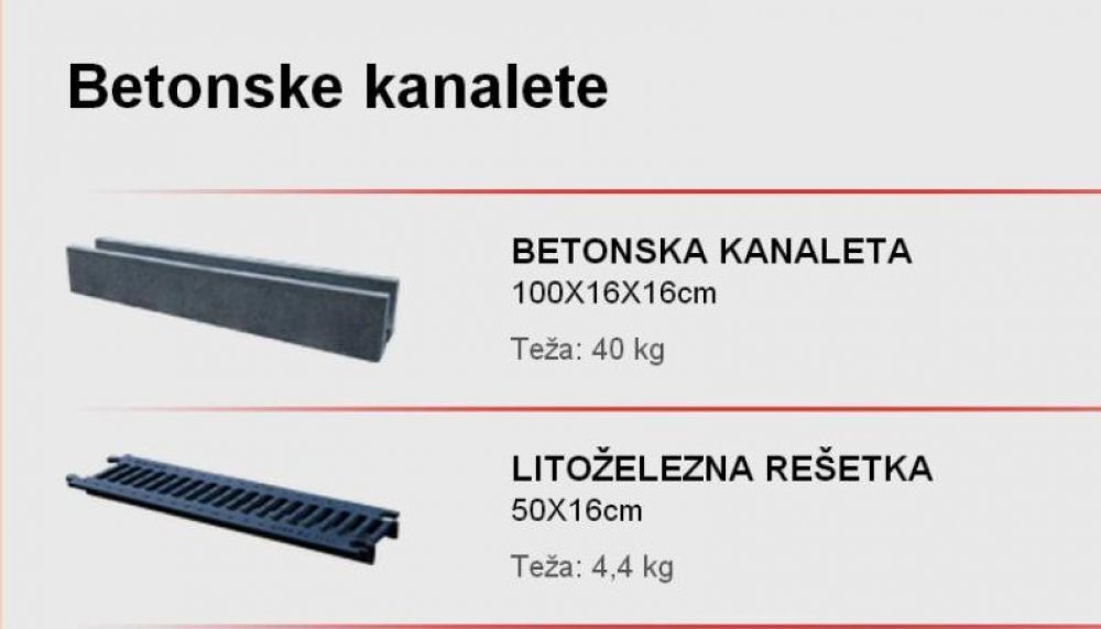 Kanalete so visoko odporne proti agresivnimi snovmi - sol, kemikalije. Za odvodnjavanje meteorne vode dvorišč, teras, vrtnih površin, peš poti in pa tudi industrijskih površin.