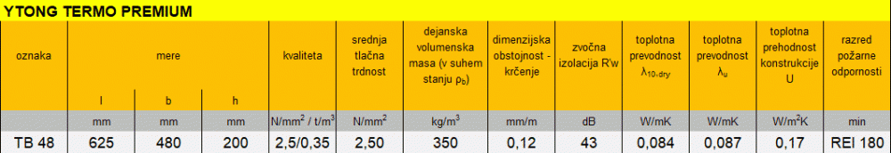 Ytong Termo Premium zidaki se uporabljajo za gradnjo nosilnih zunanjih zidov za izvedbo zelo dobrih nizkoenergijskih hiš brez dodatne toplotne izolacije na obodu stavbe. Ytong Termo Premium zidake odlikuje odlična toplotna izolativnost in nosilnost obenem.