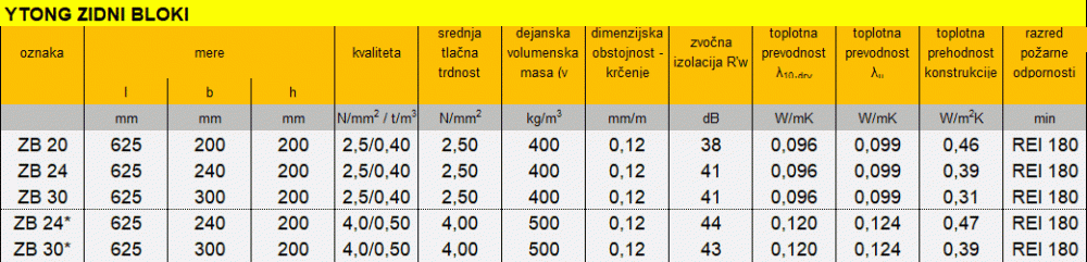 Do višine objektov P+2 uporabljamo za spodnje etaže zidne bloke večje trdnosti, to je PP 4,0/0,5. Za zidove med stanovanji oziroma med prostori, kjer je zahtevana višja zvočna izolativnost, uporabimo zvočno izolacijske zidne bloke ZBZ 25/20, z volumsko maso 650 kg/m3 ali pa uporabite Silka silikatne zidake z odličnimi karakteristikami zvočne izolativnosti.